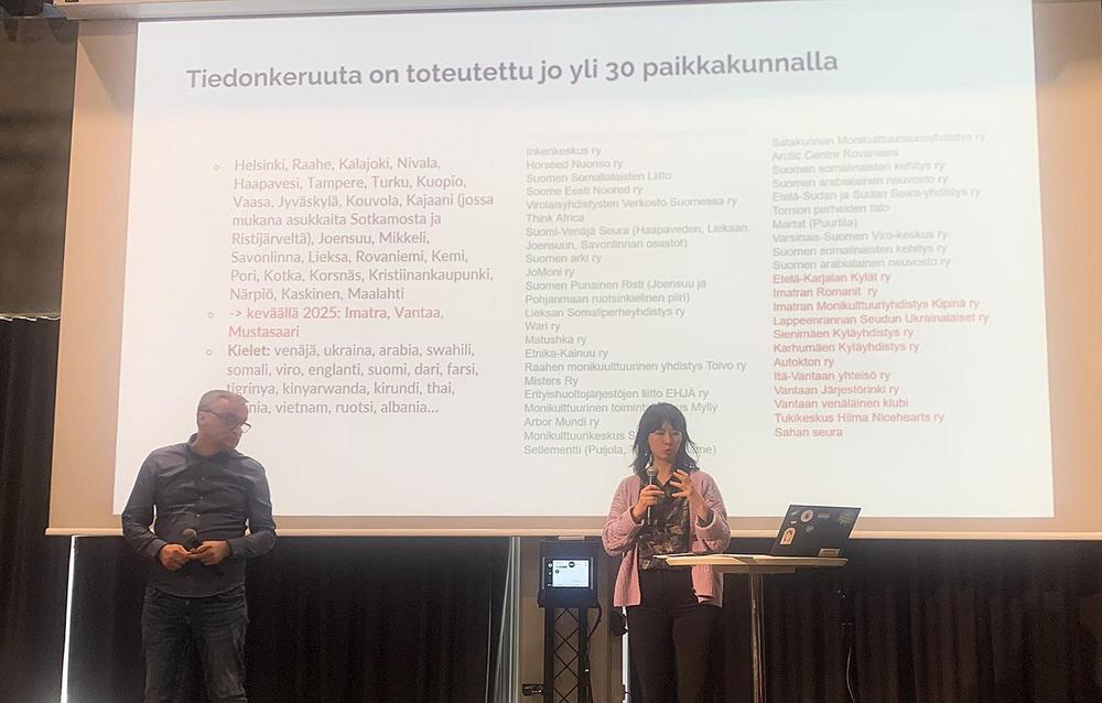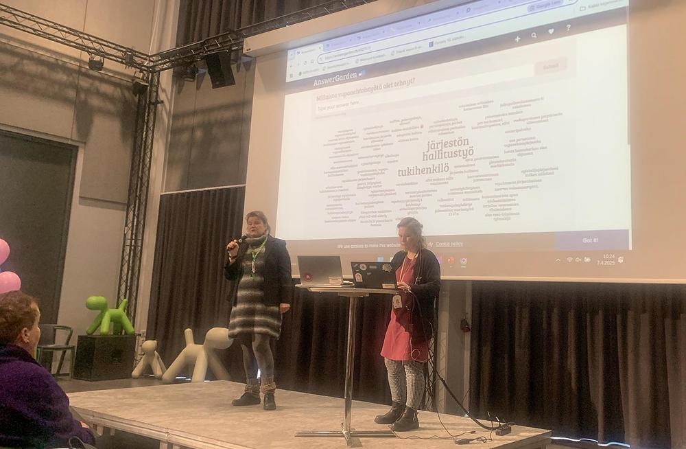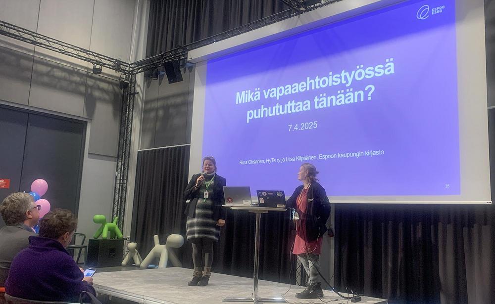 Vapaaehtoistyöstä nousivat seuraavaksi puhumaan HyTe:n Rina Oksanen ja Espoon kaupunginkirjaston Liisa Kilpiäinen. HyTe:n Vesa-konsepti on LUVN kumppanina kasvanut nopeasti ja konseptia ollaan monistamassa muihinkin kaupunkeihin. Kyse on siis ruokahävikin hyödyntämisestä, ei ruokajonoista. Liisa Kilpiäinen kehotti hyödyntämään kirjastojen palveluja entistä laajemmin.