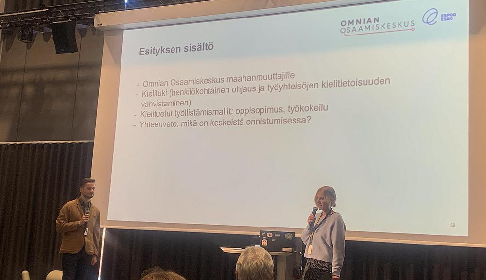 Lyhyen tauon jälkeen kuultiin Espoon työllistämispalveluista järjestöjen tukena. Järjestöt voivat myös työllistää ja saada jopa 100 % tukea kustannuksiin. Aiheessa sivuttiin myös Omnian maahanmuuttajien Osaamiskeskuksen palveluja.