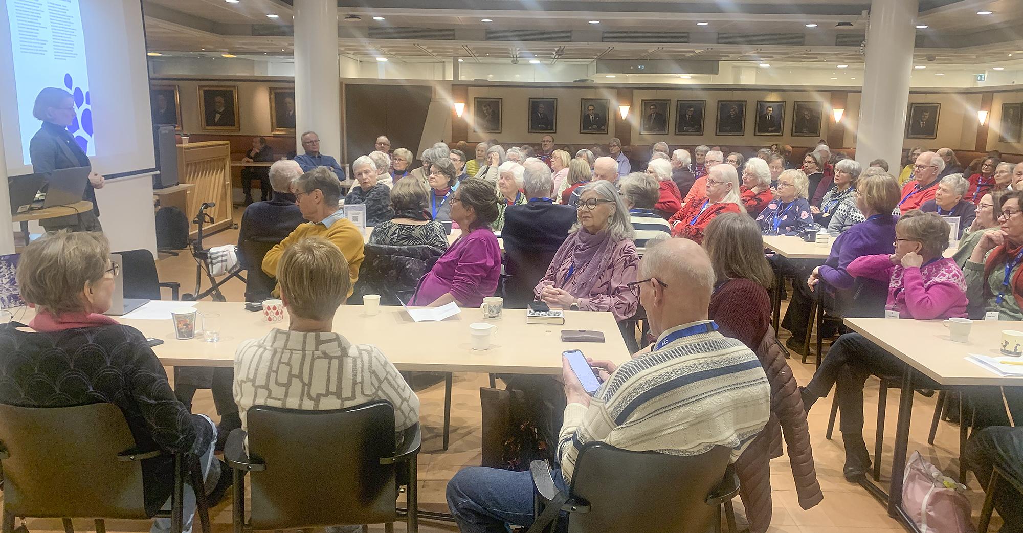 Kevätkauden toinen jäsentapaaminen tiistaina 20.1.2026 toi paikalle upeat 151 jäsentämme. Aihekin oli painava, Hyvinvointipalvelut senioreille. Niistä meille saapui kertomaan Mervi Katainen, joka toimii sekä Espoon kaupunginhallituksen että hyvinvointialueen puheenjohtajana.