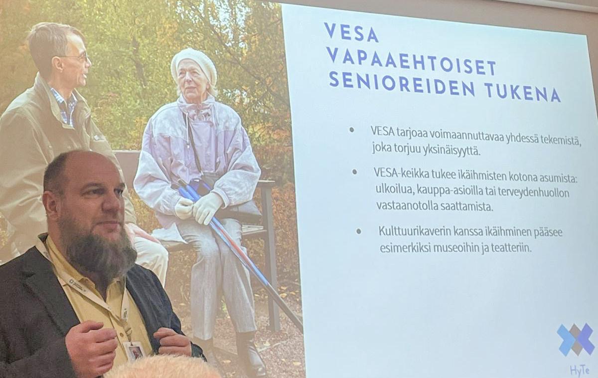 Kahvitauon jälkeen kuulimme vielä VESA-vapaaehtoistoiminnasta. Kuntosalikerhomme vetäjä ja VESA-vapaaehtoinen Kirsti Kettunen esitteli Anders Blombergin, joka aiheesta esitelmöi. Myös hänen esityksensä löytyy tämän artikkelin liitteistä (tulossa).