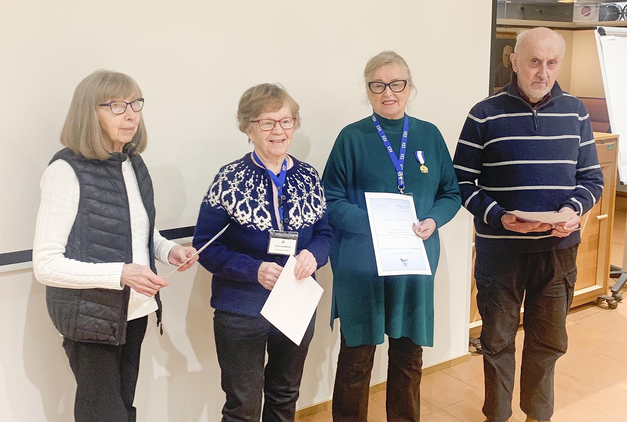 Kulttuuritapahtumista vastaava Helena Sipola jatkaa hallituksessa, mutta etsii jo kovasti itselleen seuraajaa. Jäsenrekisterista vastaava Ilkka Riihiaho jatkaa hänkin hallituksessa. Matkojen ja retkien vastaava Paula Kyllästinen etsii edelleen meille kiinnostavia kohteita. Digiseniori Matti Alavuo jatkaa hallituksessa, samoin vaikuttamistoimikunnan vetäjä Helena Sjöberg. Senioritukivastaava Monica Hippi nousi varasijalta hallituksen varsinaiseksi jäseneksi. Monica pitää yhteyksiä jäseniimme, jotka eivät käy tapaamisissa, ja tänä vuonna koko hallitus osallistuu siihen tehtävään.