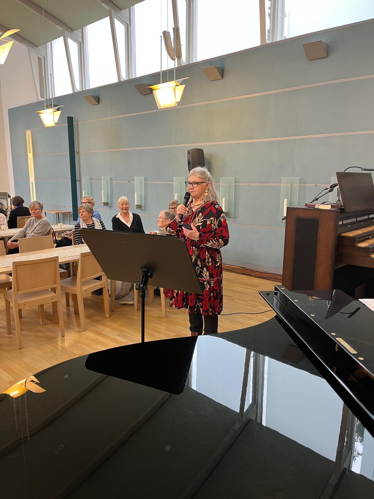 Synttärisankareita oli ilmoittautunut etukäteen 42, mutta osalle oli tullut este, koska heille katettuihin pöytiin jäi muutama paikka vapaaksi. Puheenjohtaja Saila Vesterin avasi tilaisuuden onnitellen juhlivia ja kertoen tilaisuuden ohjelman. Musiikkiopisto Avonian opettajan Esa Ylivaaran pianosäestyksellä kajautimme onnittelulaulun ja tilaisuus saatiin käyntiin.