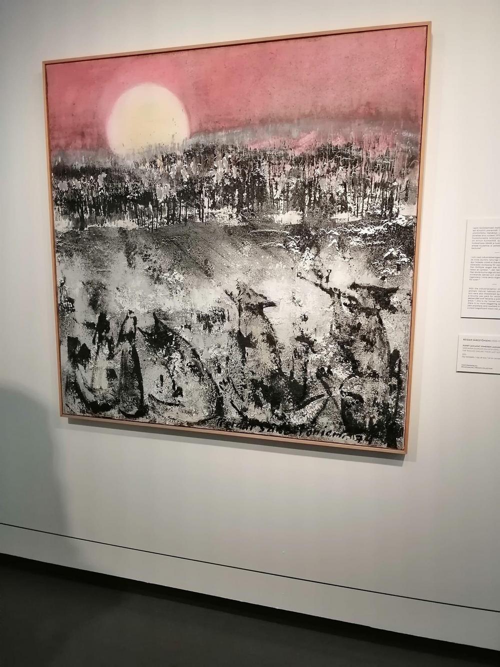 Särestöniemen näyttelyyn meidät johdatti mahtava opas Ida. Särestöniemi tunnetaan suurista ja värikylläisistä Lappi aiheisista maalauksista. Hän syntyi Kittilän Kaukosen kylässä Särestön talossa maanviljelijä Matti Kaukosen ja vaimonsa Alma Andersenin seitsenlapsisen perheen nuorimpana. Hän osoitti jo lapsena taiteellisia taipumuksia. Äidin toiveesta huolimatta häntä ei ollut varaa lähettää taideopintoihin Helsinkiin. Apuun tuli Norjassa asuva eno, joka kustansi opinnot Suomen Taideakatemian koulussa Helsingissä. Hän opiskeli myös Helsingin yliopiston piirustuslaitoksella. Kommunistinen puolue kustansi hänen opintonsa Leningradissa Ilja Repin Instituutissa.