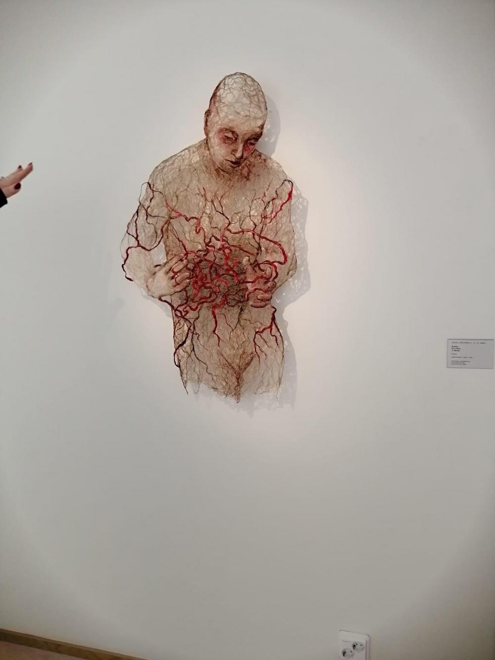 Toisena kohteena oli Gyllenbergin taidemuseon näyttely Morbus, joka käsittelee sairastumista ja sairautta nykytaiteessa. Oppaamme mukaan näyttelyn kuraattori Magdalena Åberg itsekin taiteilija oli koonnut teokset 15 taiteilijalta, jotka käsittelevät teoksissaan kehollisuutta, sairautta tai sairastumista sekä sisäelimiä. kehonosia ja mielenterveyttä. Innoitus näyttelyyn tuli Signe ja Ana Gyllenbergin Säätiön lääketieteellisen tutkimuksen tukitoiminnasta.