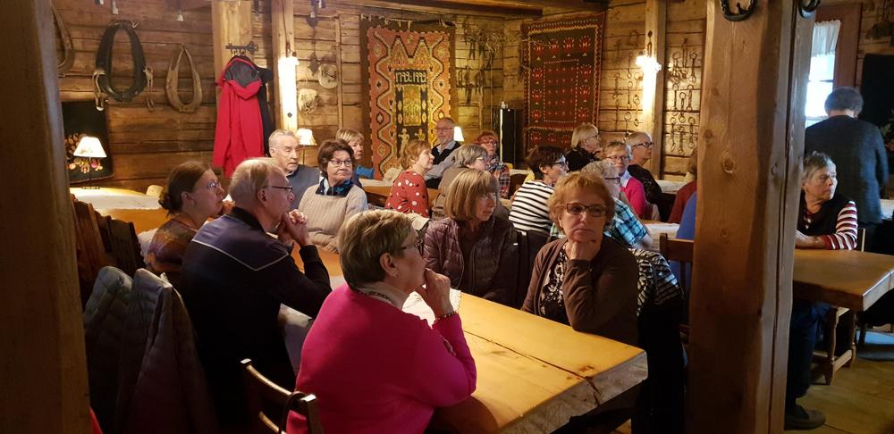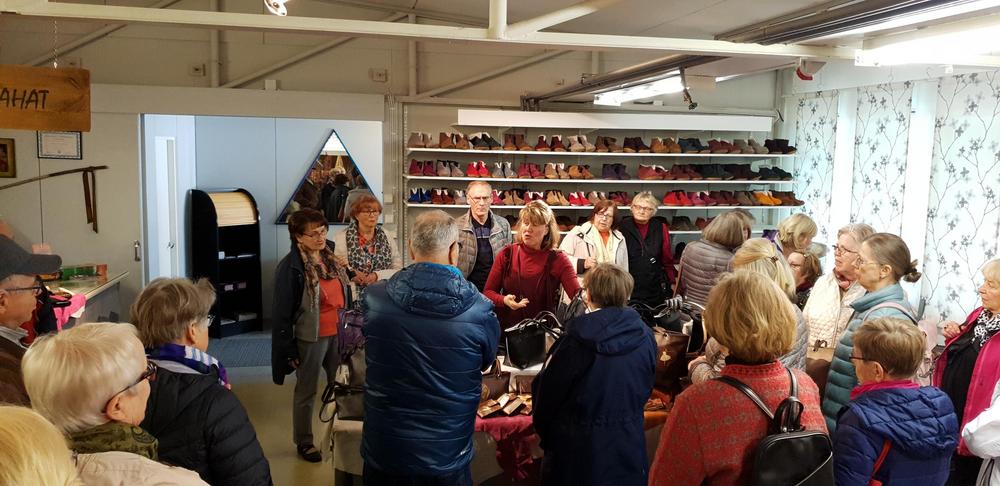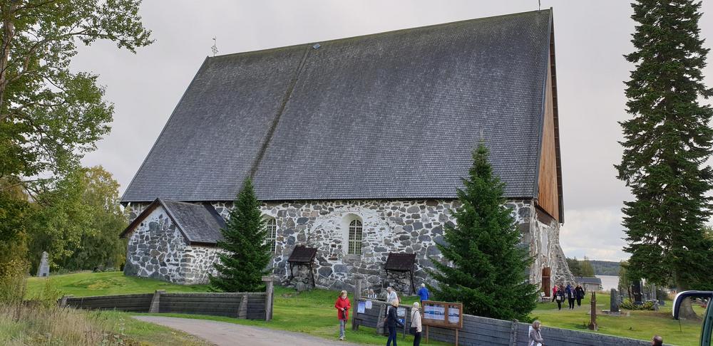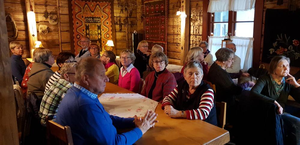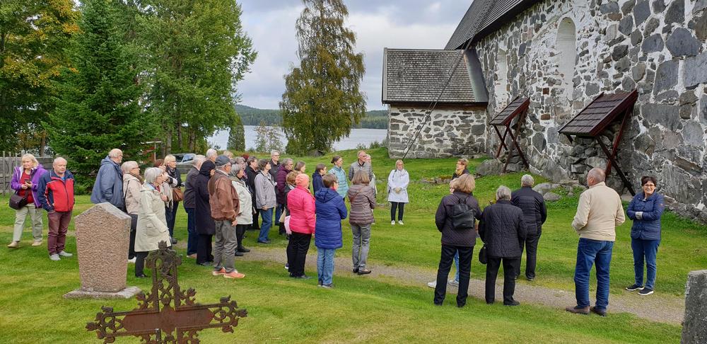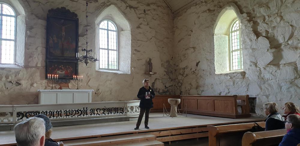 Hevossillalta Nahkaverstaalle ja lopuksi Sastamalan Pyhän Marian kirkkoon, jossa 45 retkeläistä hiljentyivä kuuntelemaan mielenkiintoista esitystä keskiaikaisen kirkon historiasta.