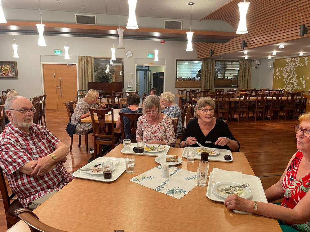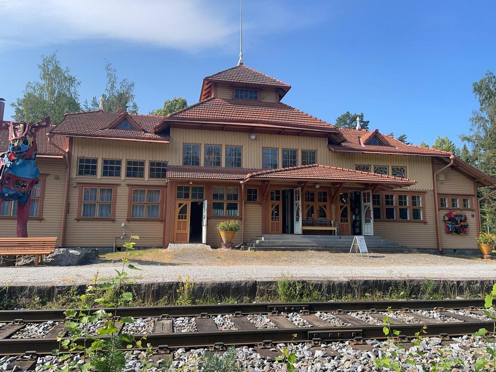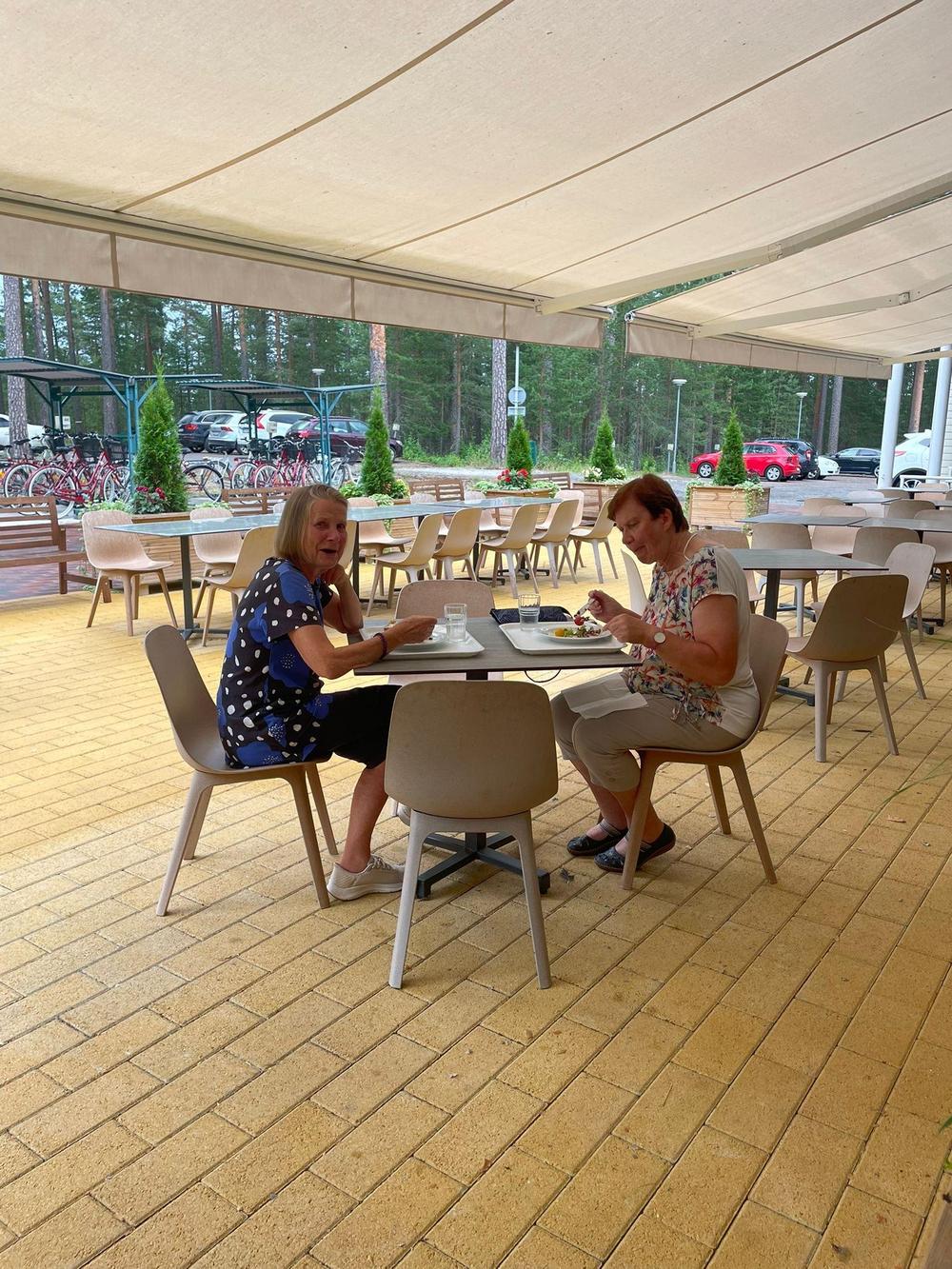 Hyvin tai vähemmän hyvin nukutun yön jälkeen aamiaiselle ja kotimatkalle. Alkumatkan kulttuuripläjäys oli mukava yllätys. Punkaharjun arkkitehtuuriltaan ainutlaatuinen kansallisromanttinen rautatierakennus toimii Aseman taidelaiturina. Se on yksityinen galleria, jota ylläpitävät loppilaiset Huitit. Upeat kaakeliuunit, jugendkalustot ja taide-esineet ja maalaukset tekivät lähtemättömän vaikutuksen. Myös pihapiirin rakennuksissa oli taiteilijoiden töitä. Mahtava kokemus! Jäätelöt Lotta-kioskilta ja matka kohti Mikkeliä ja luvattua lounastaukoa alkoi. Erittäin suosittu lounaspaikka Tertin kartano tarjosi maukkaan lounaan vehreässä ympäristössä. Tunnelmallinen 1800-luvulta peräisin oleva kartano tarjoaa majoitusta, kokous- ja juhlapalveluita. Alueella on herkkuja ja muotia myyviä putiikkeja. Turistirahaa kului. Aitan seinällä on elämänohje; ” Maanantai menee maatessa, tiistai siinä sivussa, keskiviikko ei ole työpäivä, torstain töillä ei ole eletty ennenkään, perjantai on saunapäivän aatto. Joka pyhäpäivän pyhittää, ei lauantainakaan töitä tee.”