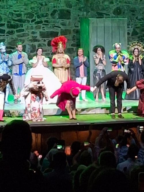 Olavinlinnassa oli lämmin, paksut kivimuurit olivat keränneet itsensä täyteen auringonlämpöä, jota vielä täysi katsomo lisäsi. Viuhkoilla oli käyttöä. Ooppera The Fairy Queen perustuu Shakespearen ”Kesäyön unelmaan” ja Henry Purcellin musiikkiin. Ooppera ei ollut tavanomainen, se rakentui toisiinsa kietoutuvista juonilangoista kesäyössä hääjuhlien aikaan. Ensimmäinen puoliaika oli hiukan hämmentävä. mutta väliajan jälkeen alkoi musiikillinen ilotulitus. Lavalla nähtiin kuuluisimpien oopperoiden hahmoja, kuultiin upeaa musiikkia ja nähtiin pukuloistoa sekä ihmisten ja keijujen kohtaamisia. Alun hämmennyksen jälkeen esitys oli pelkkää nautintoa. Aplodeista ei meinannut tulla loppua! Kruunupuistossa meitä odotti vielä yöpala.