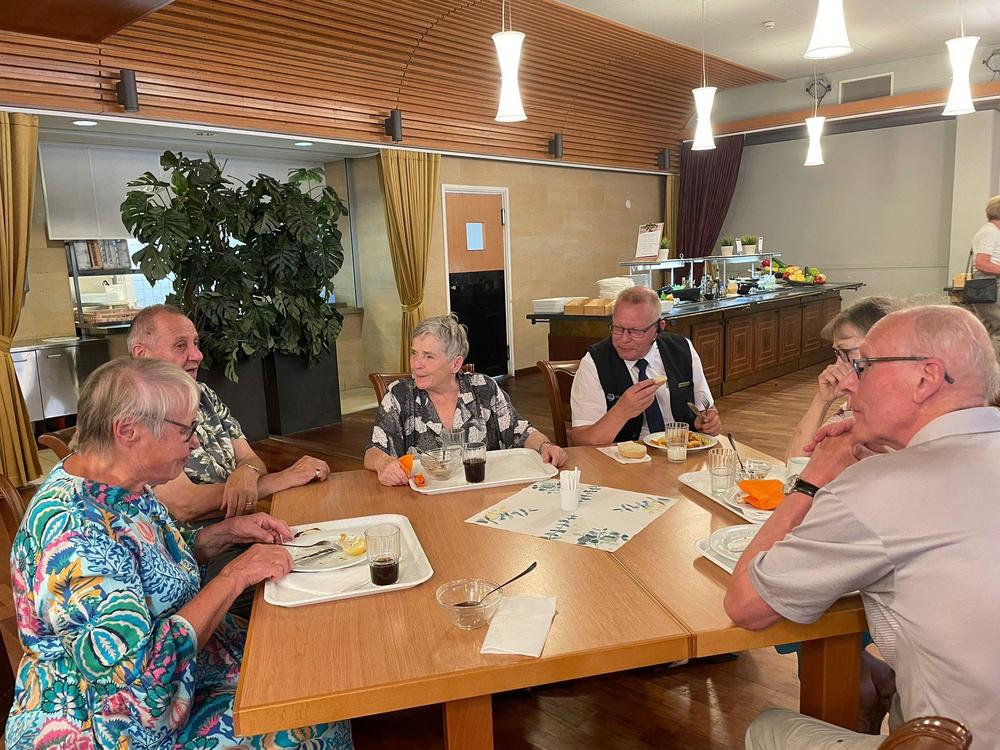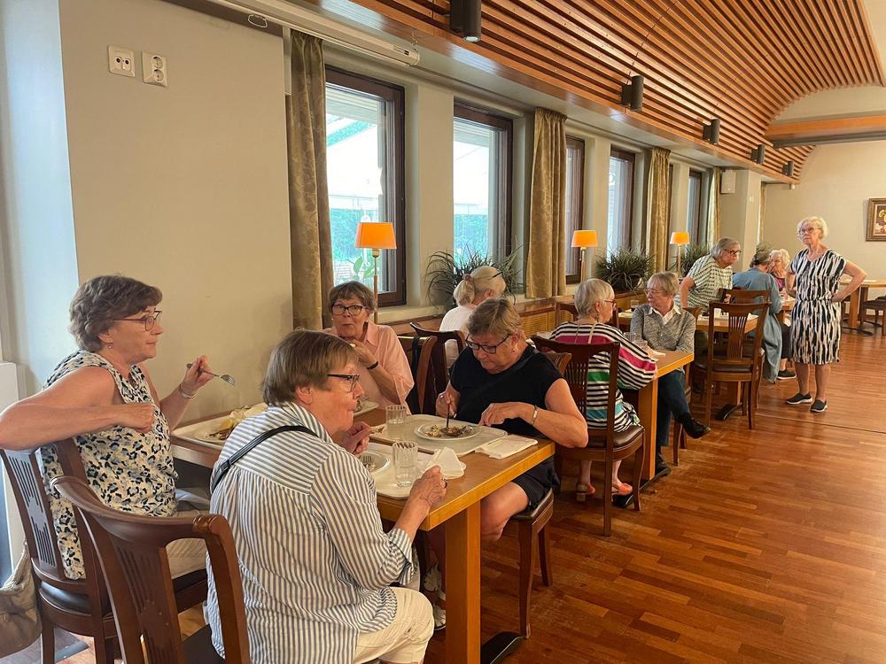 Ja helteinen matka jatkui. Kuortissa oli apteekki- ja pissatauko. Tuttuun majapaikkaamme Punkaharjulle hotelli Kruunupuistoon saavuimme sopivasti lounaalle. Kruunupuisto on kuntoutuskeskus, jossa myös kylpylä. Päärakennus on kulttuurihistoriallisesti arvokas tyypillinen jugendrakennus, jonka on suunnitellut arkkitehti Onni Törnqvist. Rakennuksessa on toiminut v.1903 perustettu Takaharjun parantola keuhkotautipotilaille. Toisen maailmansodan aikana siellä toimi sotilassairaala. Nykyään se toimii hyvinvointi- ja kuntoutuskeskuksena. Lounastettuamme sonnustauduimme valmiiksi lähtöön pääkohteeseemme eli Savonlinnaan ja Oopperaan.