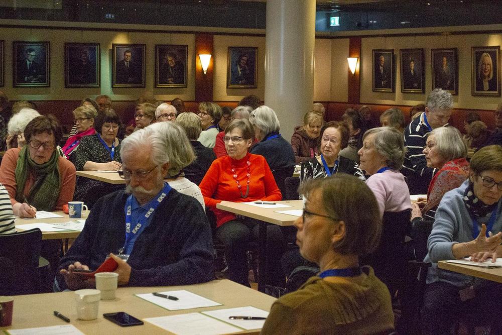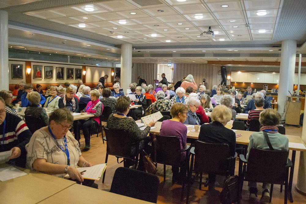 Keväisen pääsiäisviikonlopun jälkeen laskeuduttiin kirjaimellisesti arkeen ja tuttuun viileyteen sateen kera. Oli tiistai ja 2.4., onneksi jäsentapaamisessa oli hyvä henki, sen kuuli vilkkaasta keskustelusta ennen varsinaisen tilaisuuden alkua. Oli Helenan vuoro toimia päivän juontajana ja kutsua ravitsemusterapeutti Heli Salmenius-Suominen kertomaan meille ikääntyneen ravitsemus ja aivoterveydestä. Aihe tiedettiin kiinnostavaksi, ja Svante oli varautunut extra-kuormalla kahvipullia – eikä syyttä. Paikalle saapui 106 jäsentämme pohtimaan omia ruokailutottumuksiaan ja kuulemaan vinkkejä paremmasta.