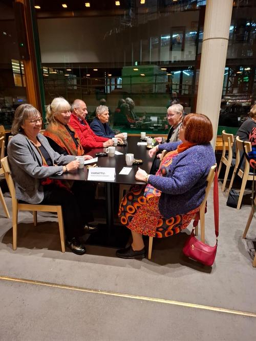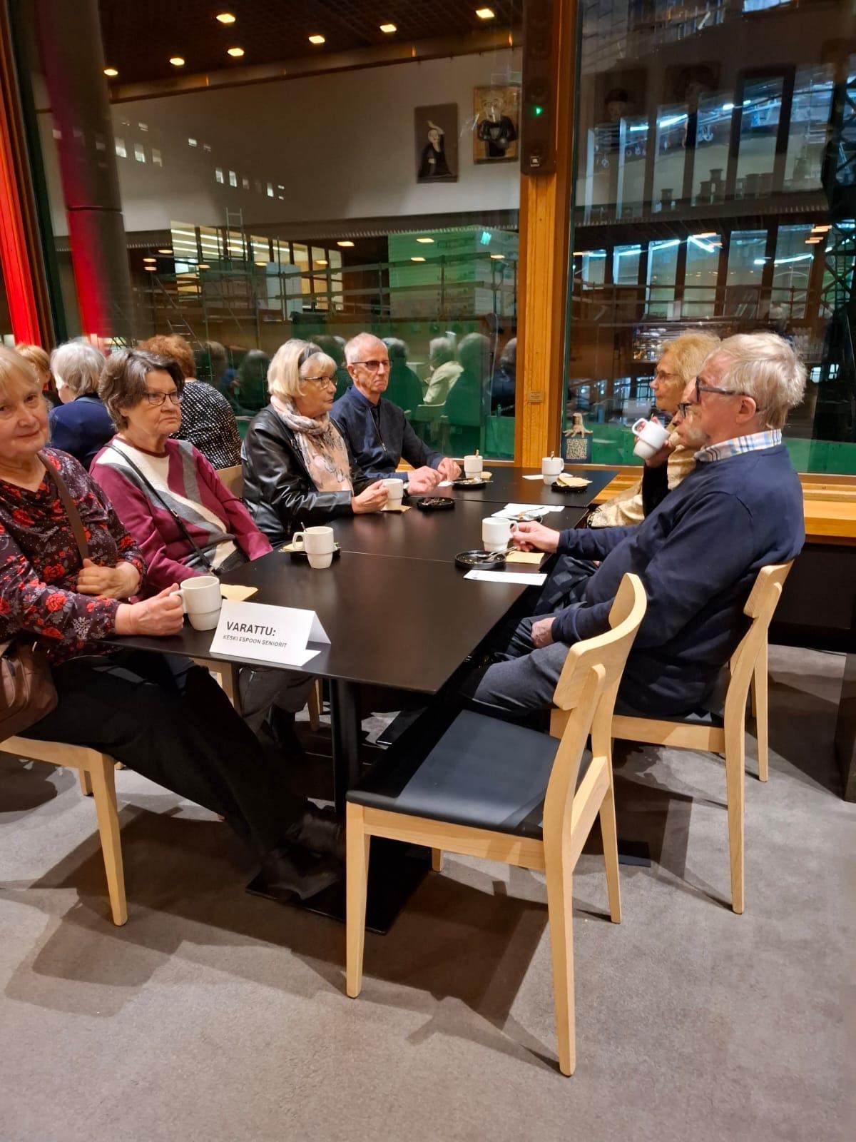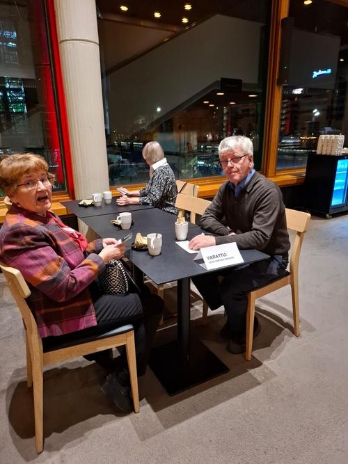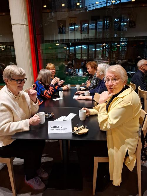 Normaalia pienempi ryhmä senioreita matkasi vesisateessa Turkuun, jossa kohteenamme oli Turun teatteri ja siellä draama ”Päällikkö”. Ennen näytöksen alkua nautimme lämpiössä kahvista ja fetapiiraasta. Pieni rupattelutuokio bussimatkan jälkeen teki hyvää.