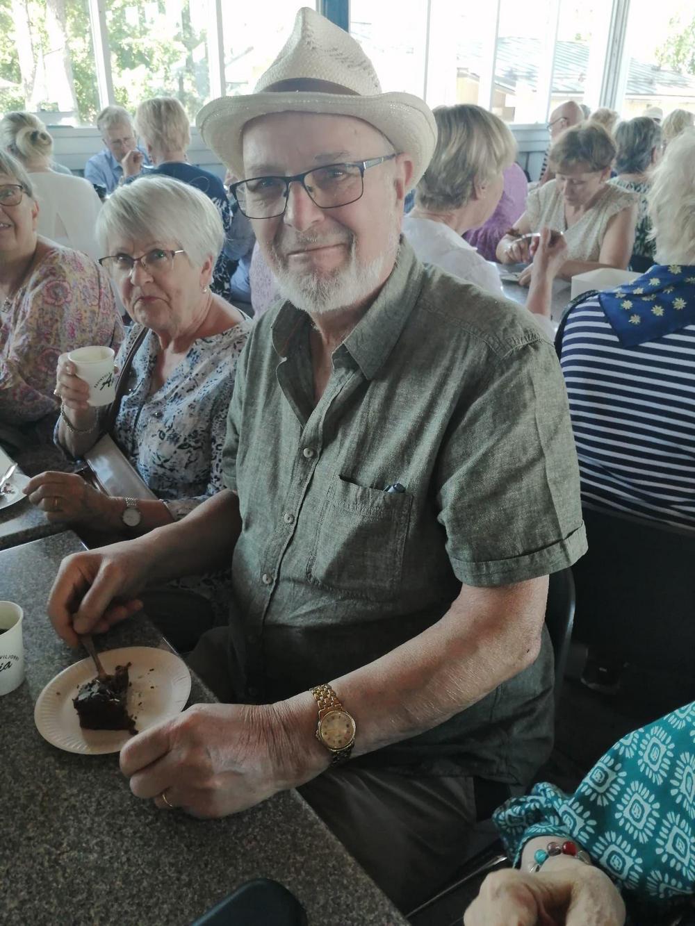 Helena yllätti meidät, kun oli tilannut meille väliaikatarjoilun. Hyvä kahvi ja iso maittava mokkaruutu valmiiksi katetuilla pöydillä, kyllä maistui! Hän yllätti toisenkin kerran kotimatkalla. Kertoi tapaamisestaan Jorvissa Veskun kanssa ja lausui meille säkeitä Eino Leinon Hymyilevästä Apollosta. Kyllä lämmitti mieltä.